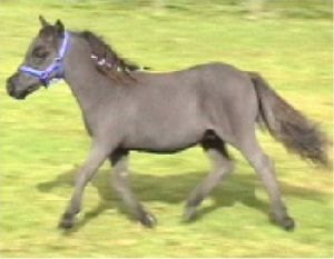 Santana is blue/black, he is double bred La Vista Rowdy Remark (Imp USA) as both his sire and dam are sired by him. Santana is tiny, he looks like he will just make 30 inches. Like his sire he has good length of leg and moves well and has the pretty head of his dam. He would be a great starter colt for the smaller breeder looking to upgrade their breeding programme or will make a nice AMHA show gelding.